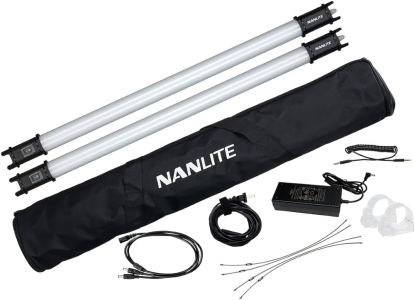 Le pack Nanlite PavoTube 15C Dual Kit intègre 2 PavoTube 15C, un sac de transport, 2 clips de montage, un adaptateur secteur, un câble Master/Slave et un cordon d’alimentation.