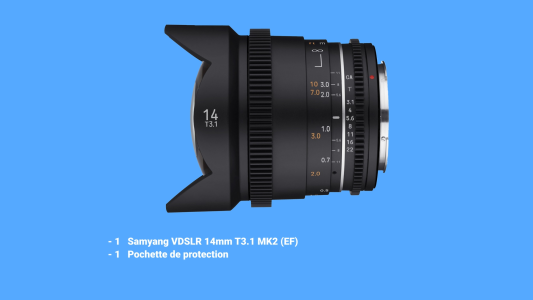 Récupérez votre Samyang 14mm T3.1 VDSLR II EF chez le loueur et réalisez votre projet. Matériel professionnel vérifié à partir de 12€/jour.